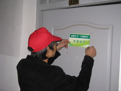 为了推进寝室文明建设,创建学风浓郁、环境整洁、文明和谐的公寓环境,12月7日晚,澳门六合彩官网 思源青协与院文明督察队一同下寝室粘贴“文明寝室”申报标志、检查寝室卫生情况。