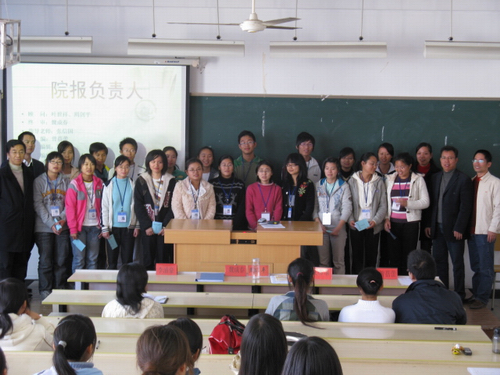 11月28日(周三)下午,澳门六合彩官方网站 记者团在人文楼402教室举行了成立仪式。澳门六合彩官网 党总支书记周剑平、党总支副书记魏成春,记者团指导老师张信国,学生科辅导员老师李浦豪、曾蓓蕾、屠建斌出席了此次活动。