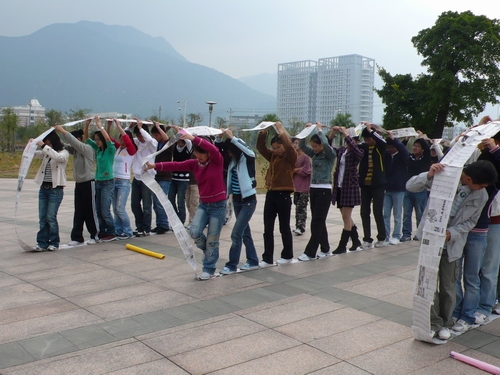 11月25日上午7:30,澳门六合彩官网 邀请了三位专业训练师在澳门六合彩官网 前面的场地上,给第五期团学干部培训班的所有学员进行了一场“业余兼专业”的素质拓展户外训练营活动。