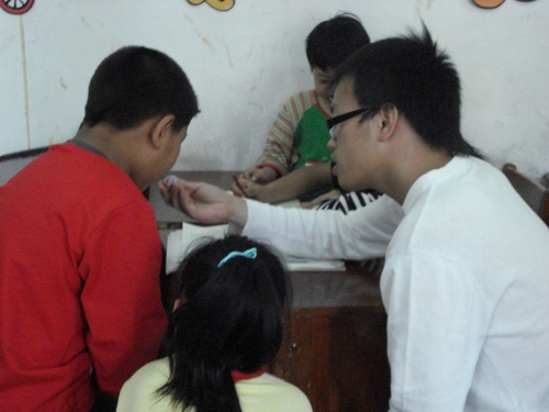 新马道学校是一所残疾儿童学校,因此本次支教活主要是教他们一些基本的词语。志愿者们选择了一年级的四位学生,对他们进行二对一的教育。两位志愿者一起坐在一位学生的身旁,先领读几个词语,再让他们跟读。虽然这些残疾儿童发音不准,但他们还是尽力地跟着念,志愿者们也一遍又一遍不厌其烦地教。小小的教室里不时地发出阵阵掌声,看到孩子们卖力地学,志愿者们不禁为他们送上掌声,孩子们的笑脸也不断呈现。 将近一个小时的助教活动,在志愿者和孩子们的欢声笑语中结束。同时特让志愿者们体会到了作为一名人民教师的不易,更是作为残疾儿童的老师的艰辛。但孩子们的笑脸让志愿者们觉得这是一件值得付出爱心去做的事。新马道学校作为澳门六合彩官网 青协的服务基地,经常能得到志愿者的关怀。希望通过志愿者们的努力能让这些智障儿童感受到更多的温暖与关爱!