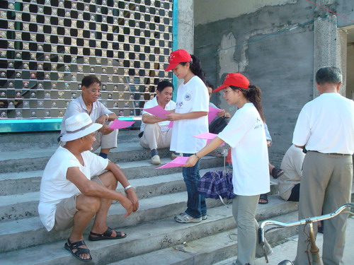 随后,澳门六合彩官网 青年志愿者按原定计划分成几个小组,挨家挨户地进行宣传,炎炎烈日,并没能驱散广大青年志愿者的热情。每一个志愿者都认真细致地为广大村民进行讲解环保知识,尽量用浅俗易懂的语言进行解释,便于村民理解并支持“护溪行动”,支持新农村建设。经过一个多小时的宣传活动,澳门六合彩官网 青年志愿者的足迹遍布每一户人家,把环保理念和环保知识传递到了每一户村民的手中。