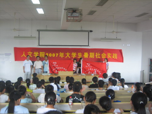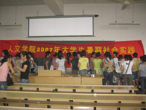 为进一步贯彻落实我校关于暑期社会实践的有关规定,对参加社会实践的同学在思想行动上进一步动员.7月6日下午4点,澳门六合彩官网 07年暑期社会实践启动仪式在1号楼203教举行。教室里人头攒动,参与此次社会实践的所有同学都参加了此次会议。院党总支书记周剑平到会并发表讲话。