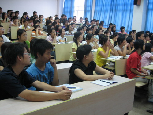 院长叶世祥也聆听了此次讲座。讲座一开始,盘剑教授就给我们放了影片《满城尽带黄金甲》的片段,立即吸引大批眼球。通过影片的播放,他引出了现在商业大片的具体意义,并且在与学生的互动中,让我们明白了评价大片不能随波逐流,人云亦云,一定要有自己的见解,从影片的视觉效果,思想层次出发,对它们进行客观地评价,意义深刻。