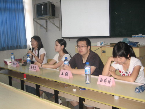 2007考研交流会在1号楼201教室举行。交流会邀请了康剑娜、王强、孙婷婷、徐宜宜四位在今年研究生考试中发挥出色的同学,与到场的学生进行了交流。