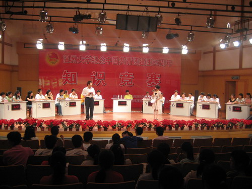 团委承办的“温州大学纪念中国共青团建团85周年知识竞赛”在温大北校音乐厅隆重举行。